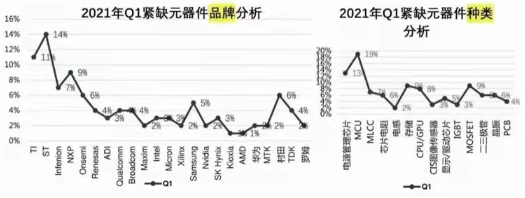 2021年Q1緊缺元器件品牌及種類分析